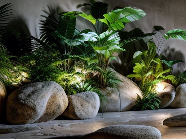 * Mediterranean-style outdoor rock formation with warm tones and plant integration mock rock lightweight rock artificial rock